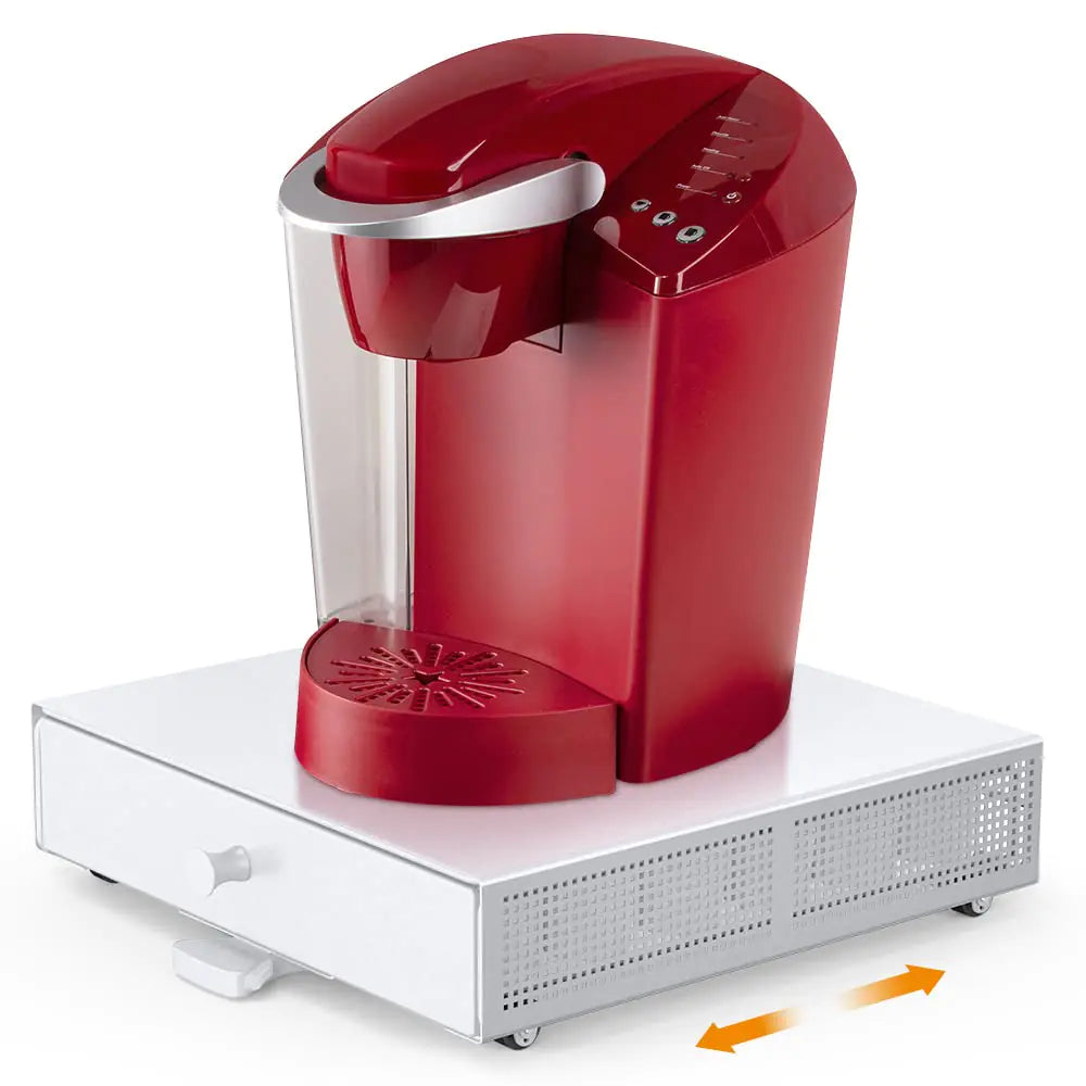 [【SLIDING TRAY】 Tired of moving the coffee maker around when the space between its lid and your upper cabinet is limited? Goldlion sliding tray with a wheeled design enables you to move your coffee maker with fingertips for hassle-free pod accessibility refill and brewing. 【EASY TO USE】 Featuring an ergonomic button Goldlion K Cup organizer is pretty easy to use. Simply press the button to release the brake so you can move it around and release the button to fix your sliding tray in place. 【LARGE CAPACITY】 With a capacious design Goldlion coffee pod storage drawer holds up to 36 K Cup pods at a time. This large capacity lets you keep all of your favorite beverages at hand. 【SPACE SAVING】 Place your single-serve coffee machine on top of this drawer to save valuable space on your countertop. Now you can keep your beverages close to your Keurig coffee maker without taking extra space. 【WIDE COMPATIBILITY】 Crafted with a large surface with a width of 12.9 inches and a depth of 12.6 inches Goldlion coffee pod holder fits seamlessly under all Keurig classic and plus series coffee makers including K-Elite K-Classic K-Mini Plus K-Café and K-Duo.]